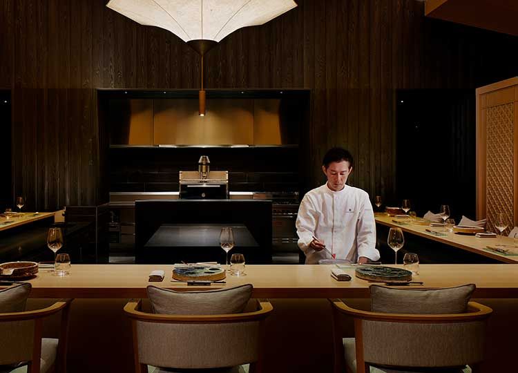 ディナータイムのみオープンするシェフズテーブルでは、“『琳派リフレクション』~ここでしか巡り合えない革新的な食体験~”がテーマの、シェフズテーブル限定コースをご提供いたします。総料理長の谷口彰が、調理や盛り付けなどのパフォーマンスを目の前で行いお客様をおもてなしいたします。敷地内のハーブ園で採れた新鮮なハーブや京都の野菜をふんだんにつかったシグニチャーメニューの「薬草園」をはじめとするアーティスティックな料理の数々をお楽しみください。