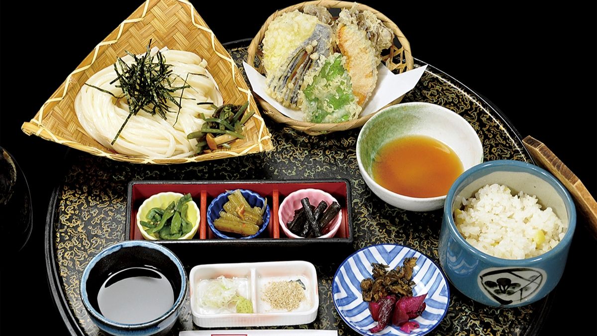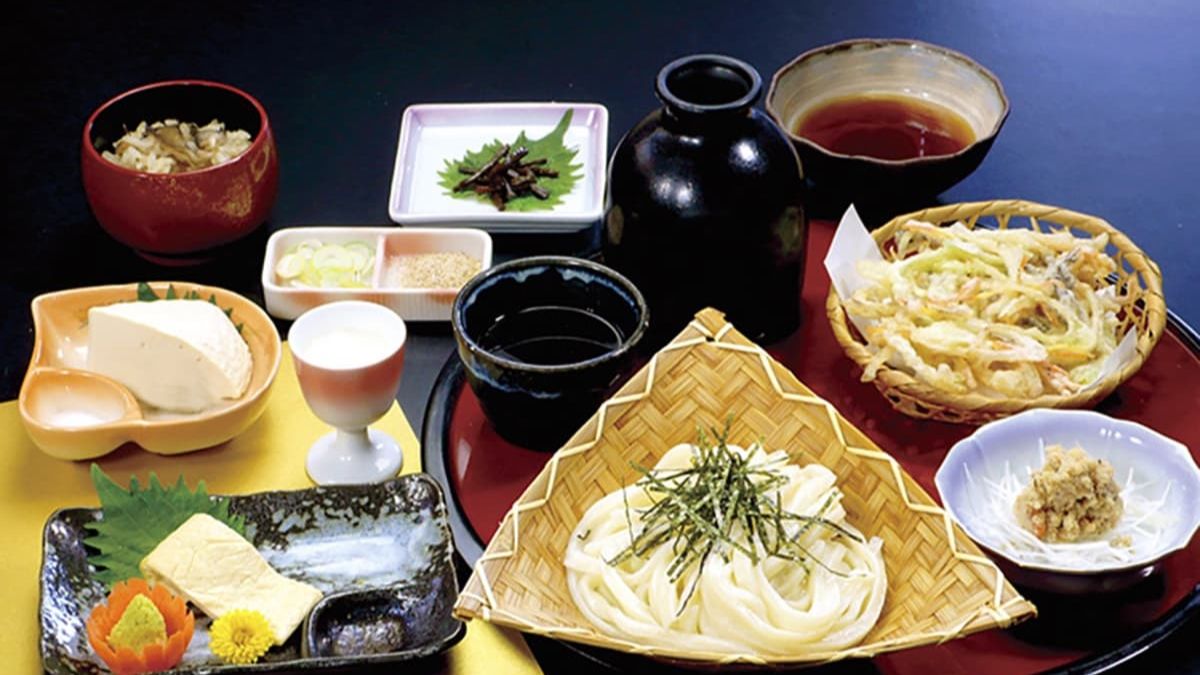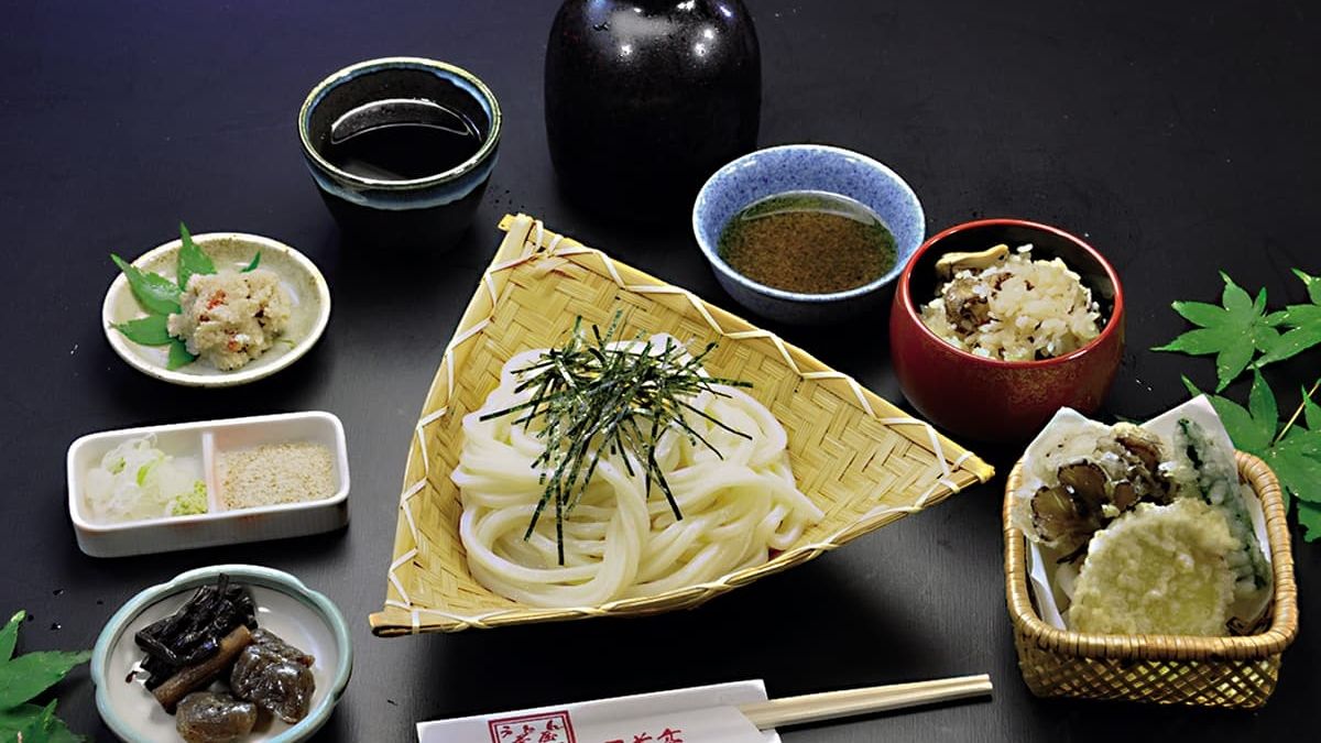 「水沢うどん」は、群馬県伊香保温泉水沢の五徳山水澤寺門前で参拝者に出される伝統のうどん。水澤寺は、坂東三十三番札所・水澤観音として知られ、一千三百余年前に創建されました。水澤寺の創建に尽力した高麗からの渡来僧・恵灌僧正がうどんの製法を伝授したと伝わっています。「うどん茶屋水沢万葉亭」では、榛名山麓水沢山の天然水、そして小麦粉と塩だけを使用し、秘伝の手法で2日間かけて作られたコシのあるうどん。コシの強さを堪能する為に冷たいザルうどんで食べる事がおすすめです。ほかにも豆腐や天ぷらも人気があります。