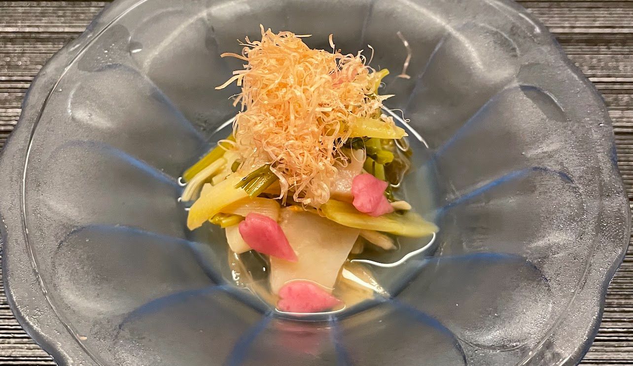 京都・西陣の静かな町家の中に佇む 店内はカウンターのみ。庭を望む静かな空間で、料理が仕上がる音や香りを間近に感じていただけます。 元芸妓による温かなもてなしと、家族で営む気取らぬ空気、日本酒や季節の一献とともに、訪れるたび新しい旬と余韻に出会える一軒。 日光出身の店主が季節の京都の食材を軸に、故郷・栃木の恵みを織り交ぜた全10品の懐石。 頂鱒やとちぎ和牛などの食材を用い、伝統の技を大切にしながらも、現代の感性を重ね、お出汁の旨味、野菜を多く取り入れた“おなかに優しい”コースです。
