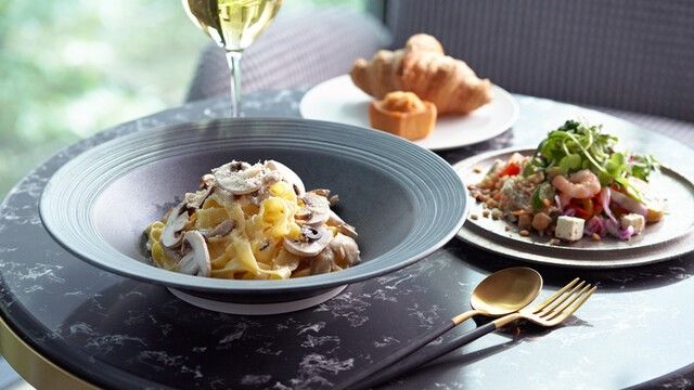 ミナミの中心にありながら、別世界のような居心地の良い空間で浸れる、極上の食のひととき。ホテルダイニングとして、朝食からランチ、カフェ、ディナーとその時々に応じた豊富なメニューの中から選んでいただけます。朝はシェフブーランジェがカウンターで焼き上げた焼き立てパン、ランチは充実した生パスタメニュー、カフェタイムには専属パティシエによるアフタヌーンティー、ディナーはコースだけでなくアラカルトも楽しんでいただけます。料理と一緒にワインやスパークリングもお楽しみください