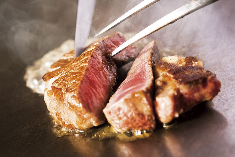 シックな鉄板カウンターで厳選素材の鉄板焼きを堪能した後は、くつろぎのサロンでスイーツタイム。別宅のような居心地のよさと非日常を演出する空間で、美食とともに過ごす優雅なひとときを。