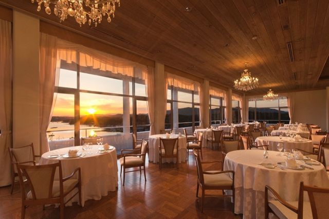 レストラン「ラ・メール ザ クラシック」は志摩観光ホテル伝統の「海の幸フランス料理」を提供するレストランです。店内はシャンデリアが煌めくクラシカル設えで、美しい英虞湾が広がる眺望が楽しめます。伊勢海老、鮑、松阪牛など三重の素晴らしい食材を使いこの地ならではの美食をお届けします。