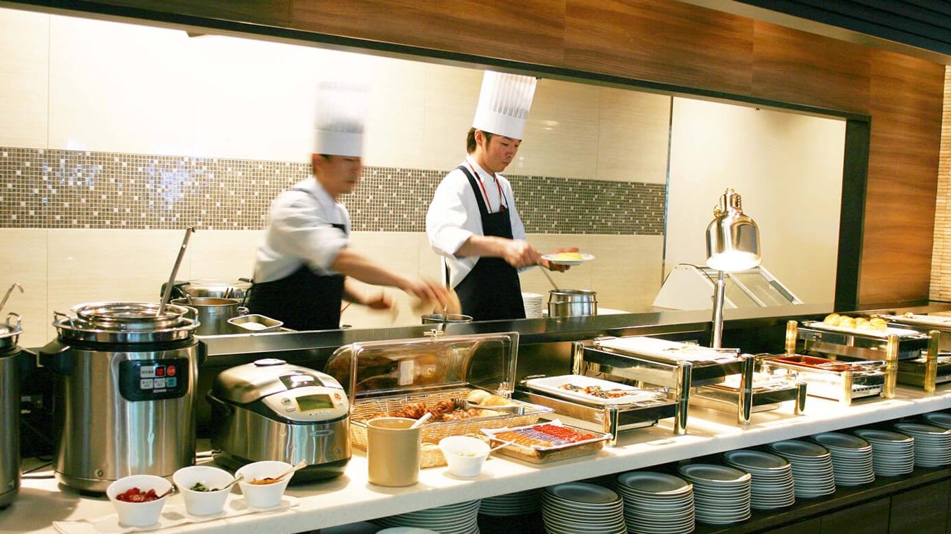 ホテル内にあり、落ち着いた雰囲気の中、カジュアルにお食事を楽しめるニューヨークスタイルのレストランです。ライブキッチンを配しており、調理の様子を目の前でご覧いただけます。人気のランチブッフェは、出来立ての料理からパティシエ特製スイーツまで、こだわりのメニューを豊富に用意してございます。お好きなものを自由に選んで、ゆっくりとしたひと時をお過ごしください。
