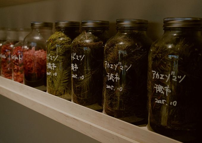 料理に合わせて素材を調達するのではなく、 素材に合わせて料理をつくる。 ⾷材は森の季節に寄り添い、⾃然の恵みを料理にします。