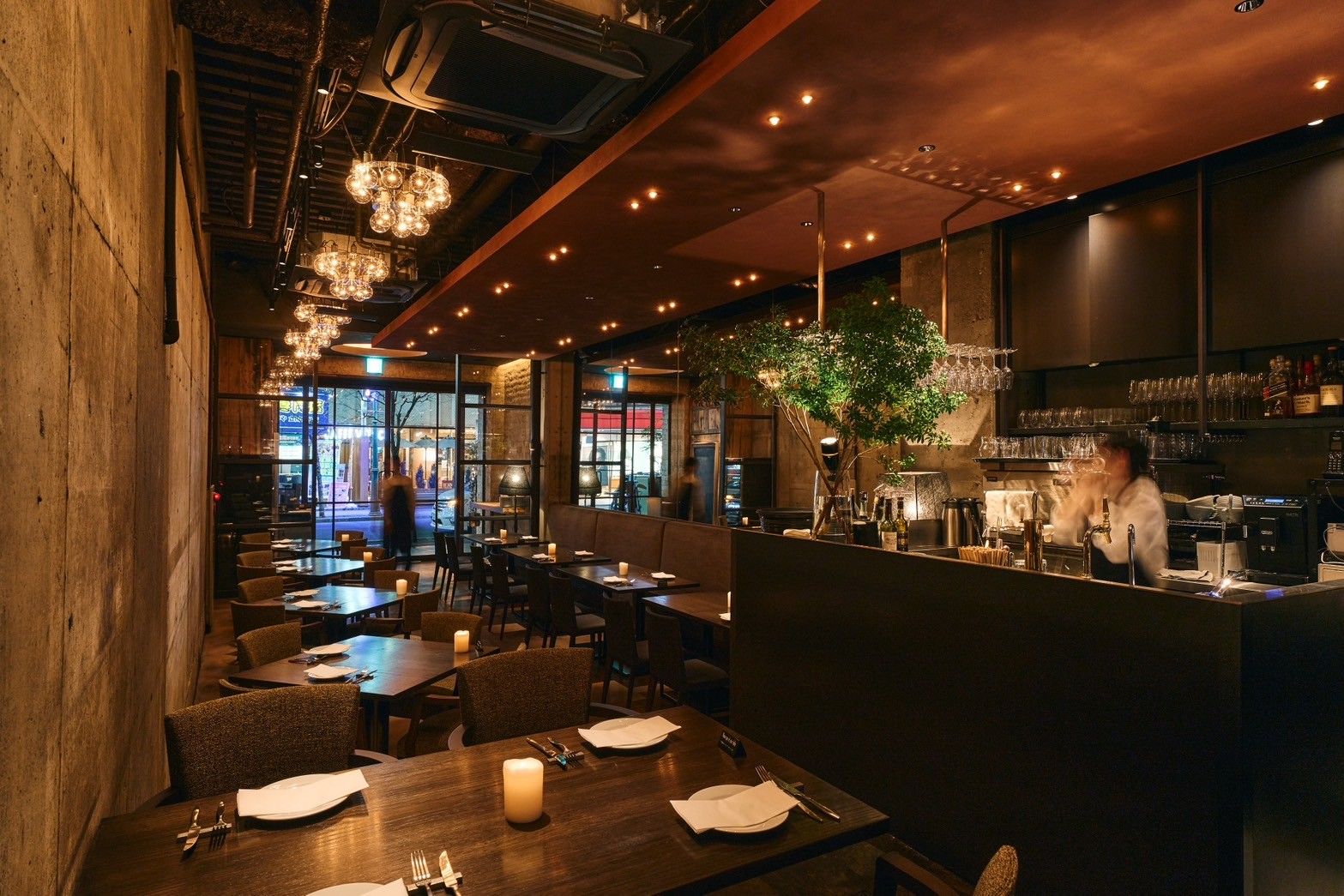 店内は無数のダウンライトとシャンデリアが照らしていて、夜はとてもムーディな雰囲気です。シェフの調理を鑑賞できるカウンター席はカップルからご好評をいただいております。パーティー用のテーブル席もご用意できますので、歓送迎会などで利用するときはお申しつけください。当店の自慢は国産食材を活かしたオーガニックイタリアンで、体に優しい料理を提供しています。ワンランク上の極上ワインと一緒にお楽しみください。