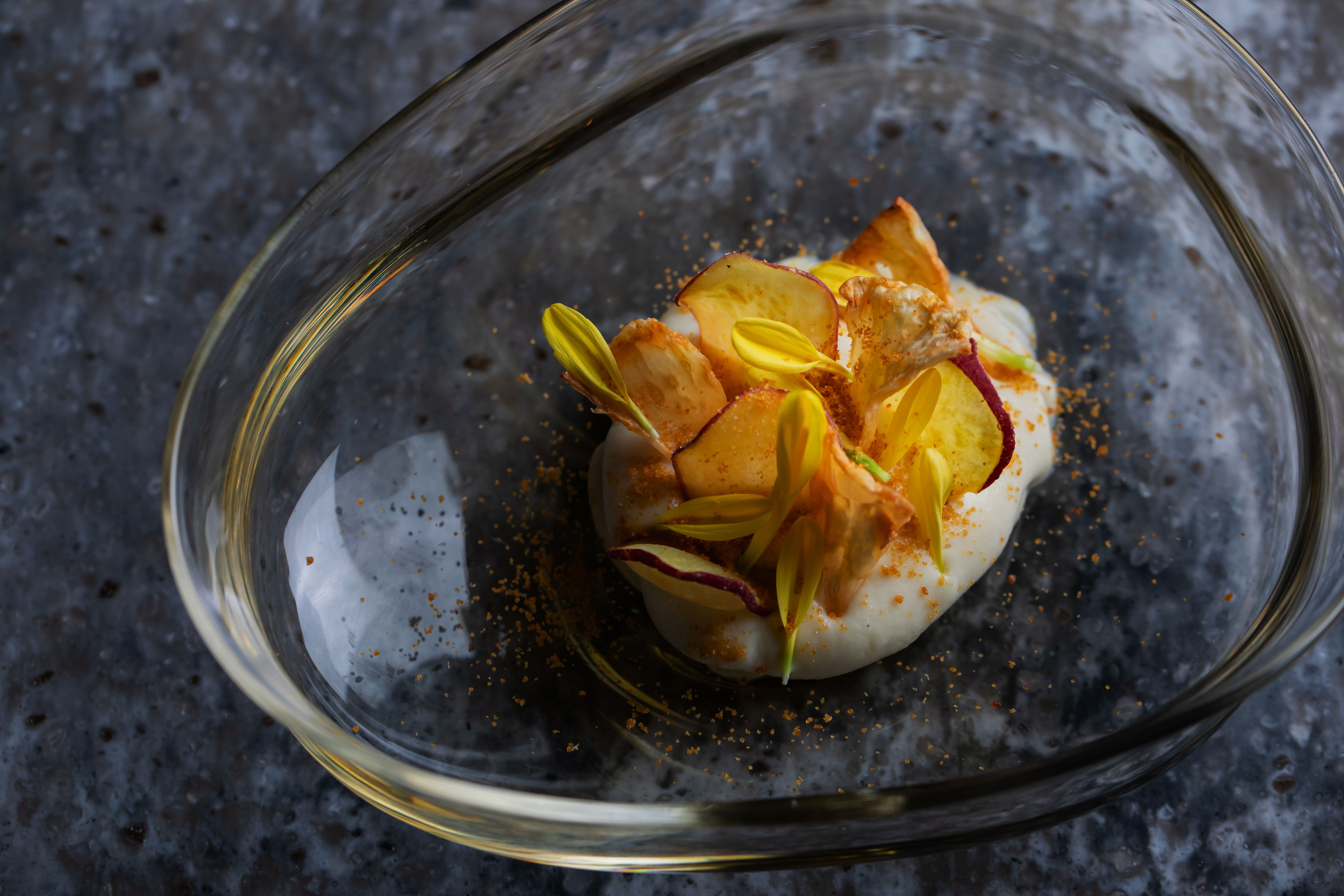コース Fruit de Merコース計8品 アミューズ、冷前菜、温前菜、パイ包み、メインディッシュ、ご飯物、デザート、ミニャルディーズ、コーヒー