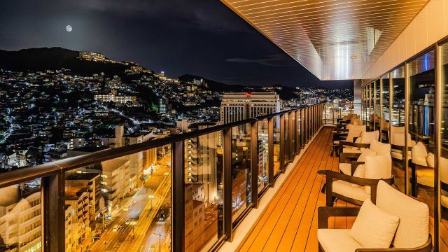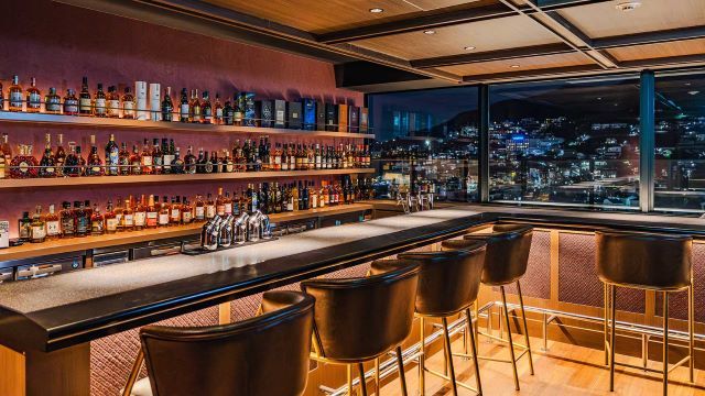 ホテル最上階に位置するバーでは、長崎の美しい夜景を背景に、バーテンダーが丁寧に作り上げるこだわりのカクテルや、世界中から集めた豊富なウイスキーをお楽しみいただけます。カウンター席ではバーテンダーとの会話を楽しみつつ、テーブル席ではご家族やご友人とゆったりとした時間をお過ごしいただけます。特別なひとときを、是非この上質な空間でご堪能ください。