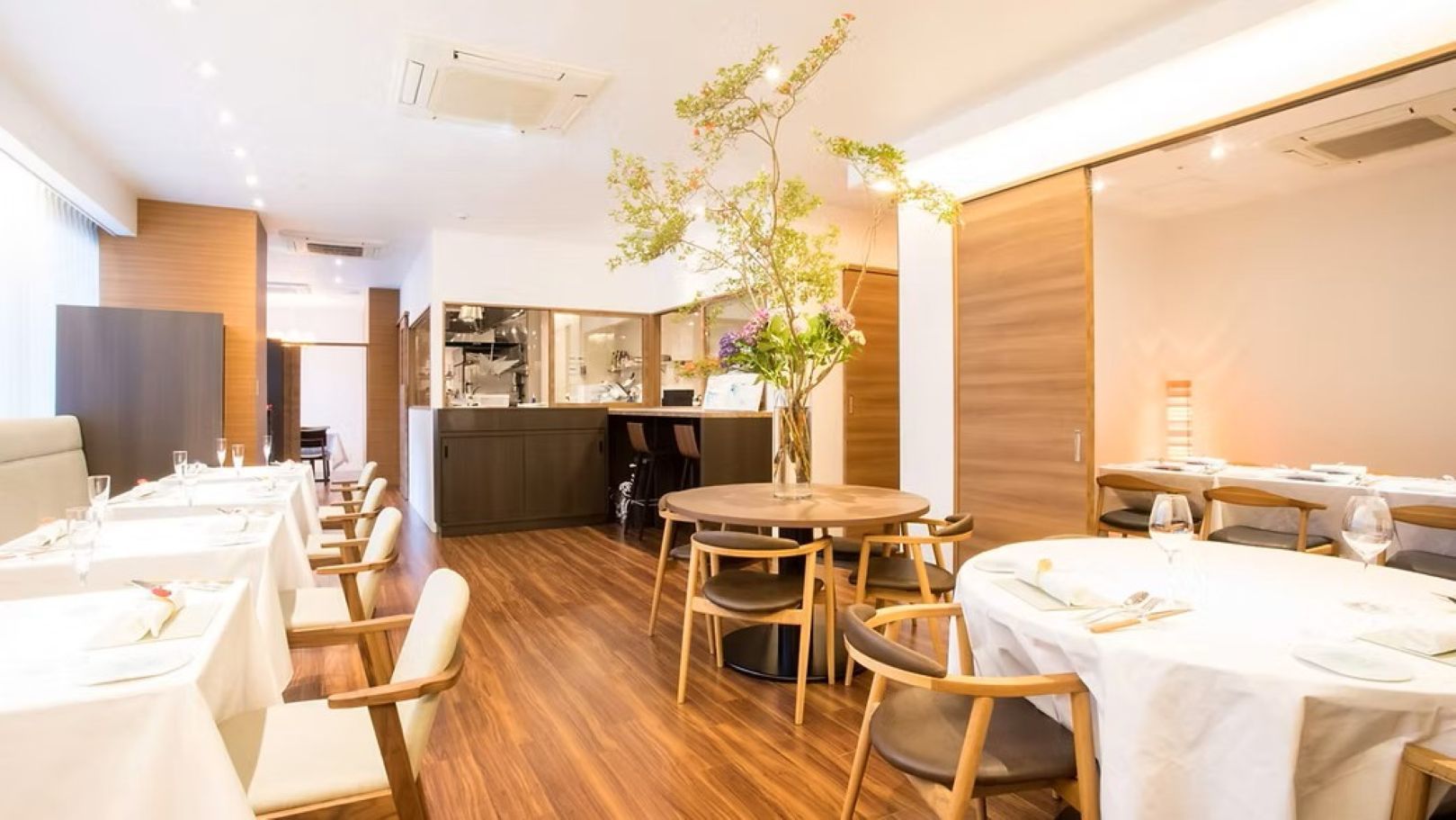 なかがわ本店は、福岡の薬院・渡辺通エリアに位置する創作イタリアンのお店です。料理はイタリアンを軸に、旬の地元産の新鮮な食材をふんだんに取り入れたコース。オープンキッチンで手元が見える演出も魅力です。白と木を基調とする落ち着きと自然光が差し込む店内や大広間と個室を備え、記念日などの特別な時間のご利用にも是非オススメです。