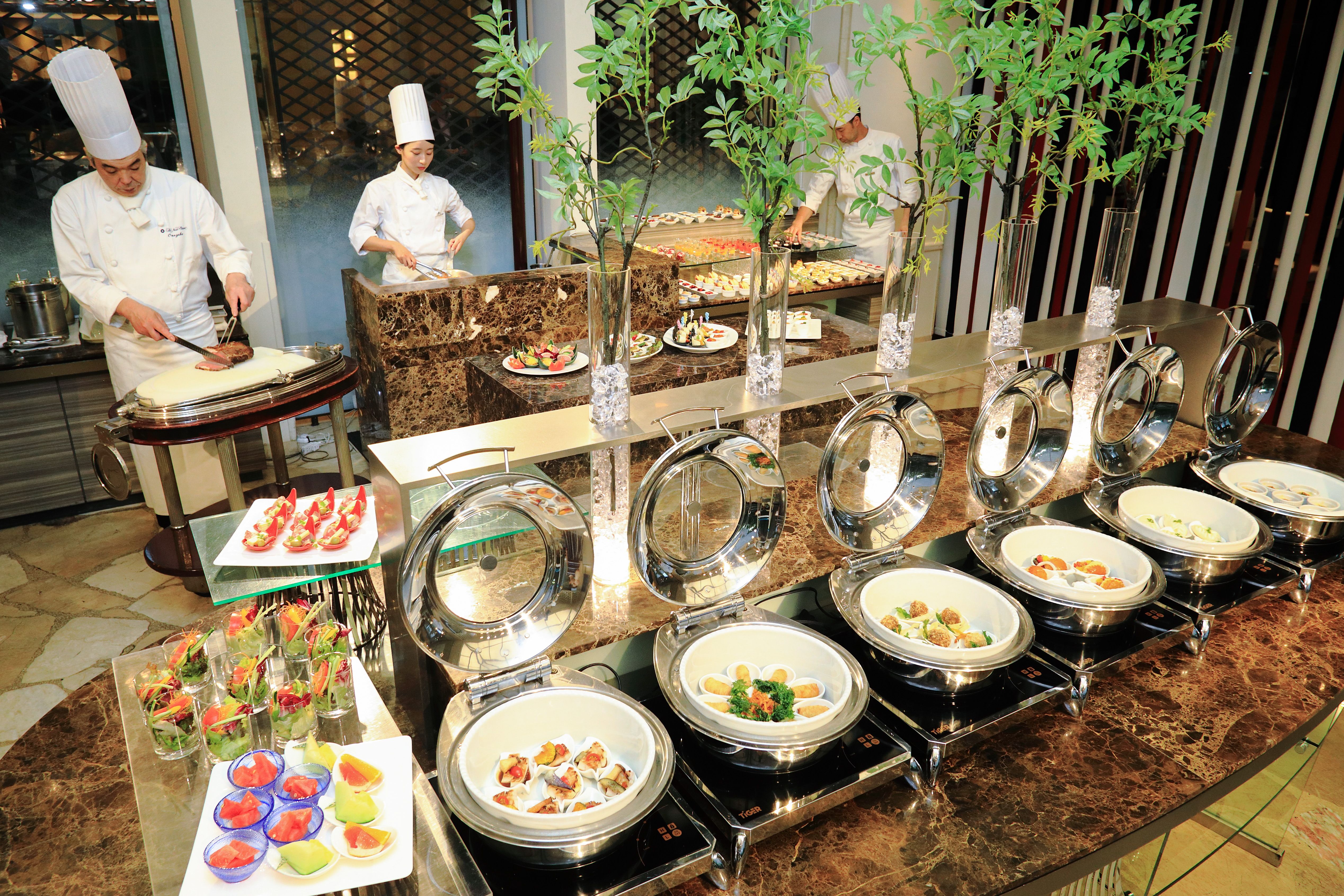 ホテルニューオータニ長岡のメインダイニング「カフェ&ダイニング アゼリア」。大きな窓から陽光が差し込み、クラシカルな調度品が揃う落ち着いた空間。ビュッフェやコース料理、喫茶など幅広くお楽しみいただけます。ランチでは、肉料理・魚料理からメイン料理が選べるランチ&スイーツビュッフェが人気です。ご家族やご友人の誕生日やパーティー、プロポーズなどさまざまなシーンのご利用におすすめです。