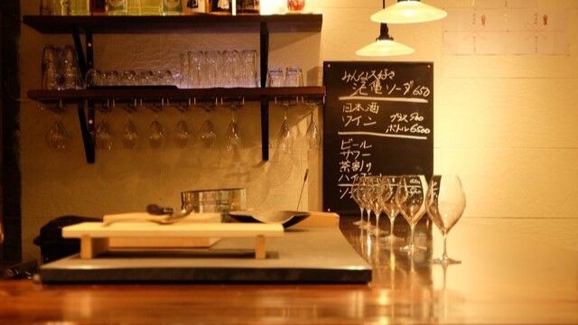 新橋駅、SL広場側にある「ニュー新橋ビル」地下一階。ご予約は毎月15日17:00翌月分受付開始。 カウンター9席、18:00~/20:30~の二部制でご案内しております。