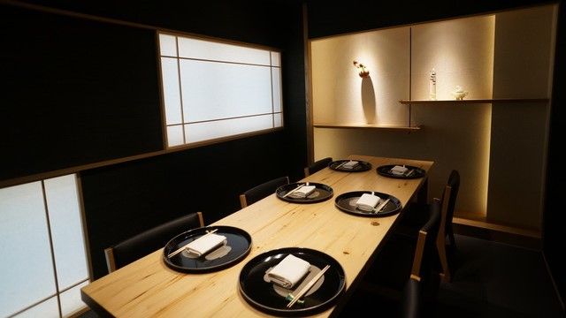 店内に足を踏み入れると広がっているのは、落ち着いた雰囲気のある和の空間です。大切な方と一緒に、心安らぐ時間をお過ごしいただけます。当店でご用意しているのは、京懐石料理です。「伝統の上に新しいものを築いて」いくことを目指し、「京都の味をベースにした懐石」料理をお出ししております。京野菜や築地の食材の旨味をいかしたこだわりの料理の数々を、美味しいお酒と一緒にお楽しみください。