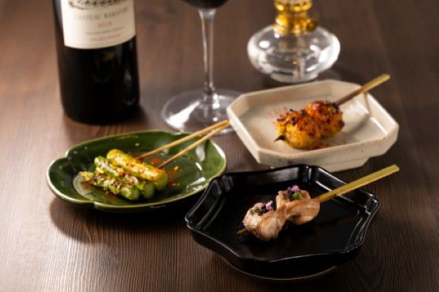 横浜・馬車道駅すぐ、関内エリアに佇む「串ビストロ 野鳥 -nodori-」は、和と洋が調和するモダンな串ビストロ。丹沢慈黒軍鶏を使用した串焼きは、ブルーベリーやトリュフ、しその花など創意あふれるソースとともに提供され、ひと口で広がる香りと旨味に魅了されます。ワインや横浜クラフトビールとの相性も抜群で、カウンター・テーブル・個室と多彩な席が揃い、デートや記念日、接待など幅広いシーンに対応。落ち着いた空間で楽しむ、串焼きの新しいスタイルをぜひご堪能ください。