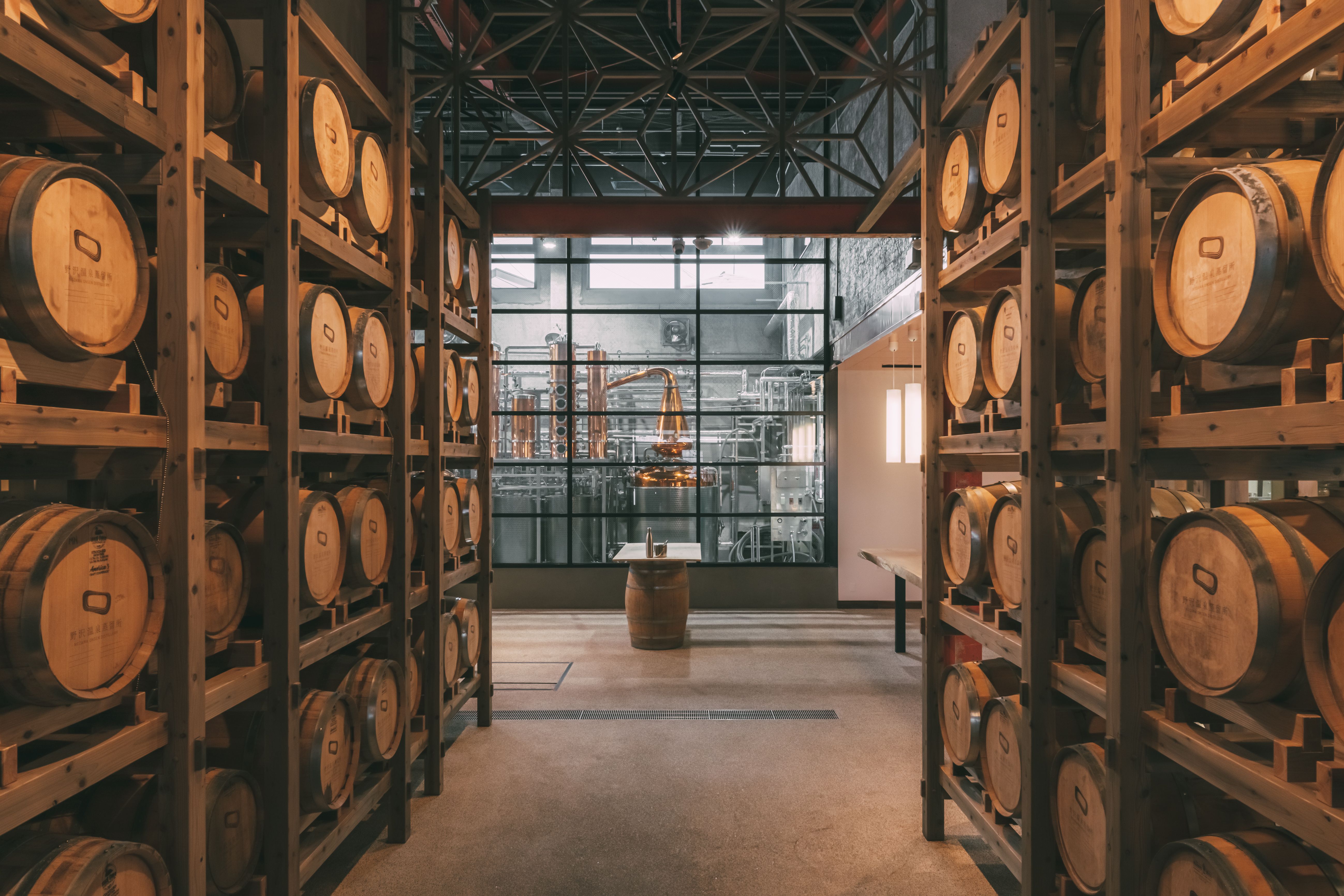 蒸留所のドアを開けた瞬間から香るウイスキー樽の香りの中で、製造しているジンの飲み比べや、ジンを使用したカクテルなどが製造風景を見ながらお楽しみいただけます。併設の売店でオリジナルグッツなどもお買い求めいただくことも可能です。野沢温泉村へお越しの際は是非お立ち寄り下さい。