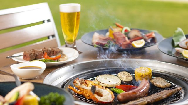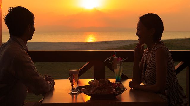 解放感溢れる店内でゆったり流れる時間の中、素敵なビーチを眺めながらバーベキュー料理を楽しめます。テラス席では、サンセットを堪能しながら心地よい潮風を感じることが出来ます。牛ロース、骨付きカルビはもちろんのこと、あぐーロースやロブスターも用意しています。地元のゴーヤを取り入れた焼き野菜もご一緒に召し上がりください。また、食後のお口直しとしてデザートもお楽しみください。