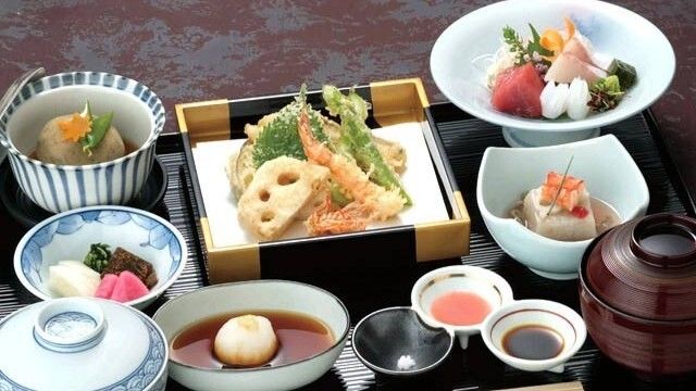 前菜、お吸物、お造り、焼物、合肴、煮物、お食事、お食後