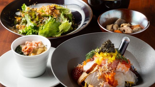九州地方の銘柄肉や魚、野菜など豊かな風土に育まれた食材を、様々な料理でご提供致します。こだわって厳選した食材は、九州の薪で調理しております。独特な香ばしい薫りと共に、シェフがこだわって作った数々の料理をご堪能頂けます。店内は明るくシンプルなインテリアで、落ち着いた雰囲気。大きな窓からは、周りの美しい景色を望むことができます。日本酒やスパークリングワイン、オリジナルカクテルなども九州地方のものにこだわっておりますので、美味しい料理と共にお楽しみください。