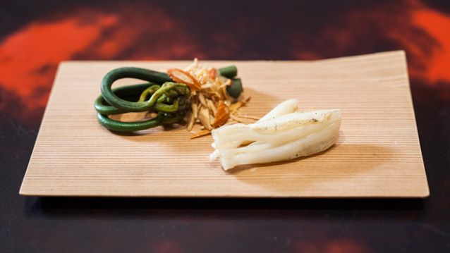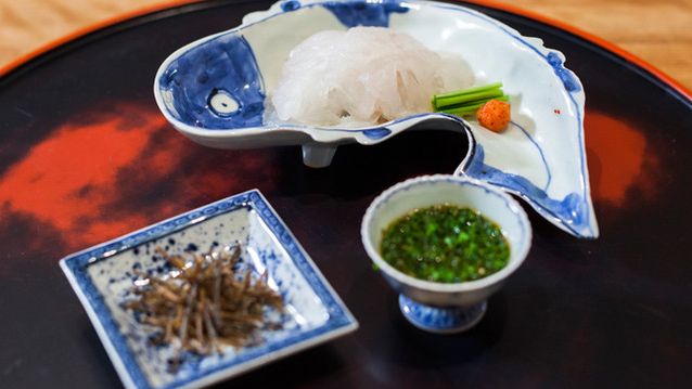 季節の花が彩るアプローチを抜けた先に広がるのは、清らかな空気が漂う和の空間。夏は鱧、秋は松茸といった季節の恵みは、匠の技によって昇華され、贅沢なコース形式で振る舞われます。日本料理で40年以上のキャリアをもつ佐藤ならではの目利きで選ばれた鮮度の高い食材が、奇をてらわない、いたってシンプルな方法で調理されていきます。自然への敬意をも感じさせる、淡く優しい味わいをご堪能ください。