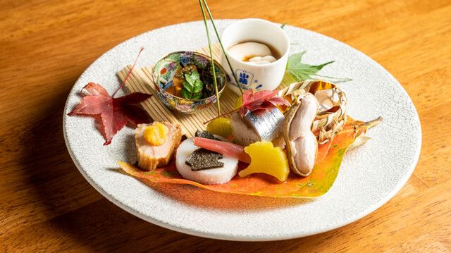 好日会席にお料理に合う日本酒をカウンターでお話ししながらお選びさせていただきます。