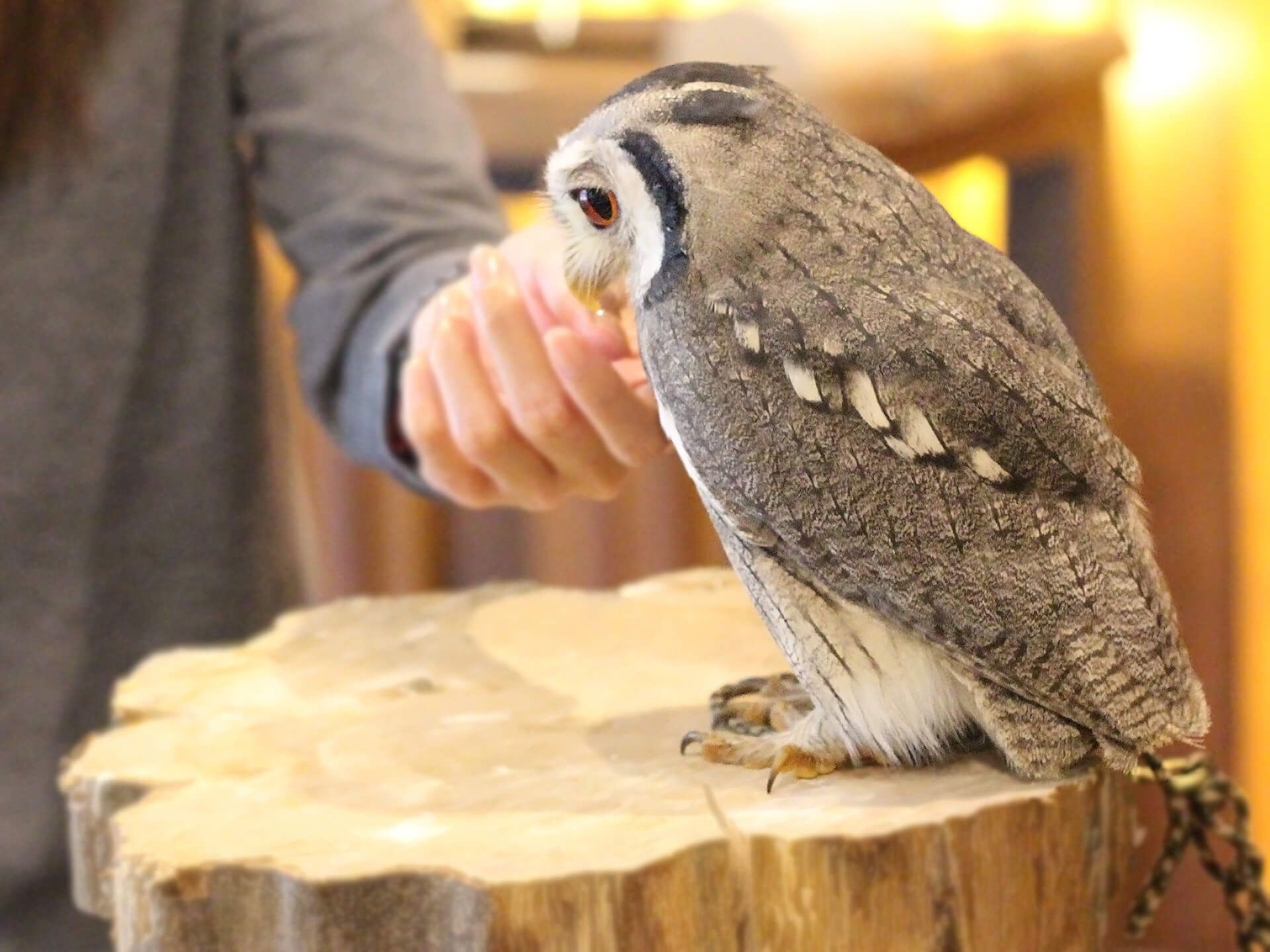 シュエットの店内は、まるでフクロウたちの森のようです。愛くるしいフクロウたちと触れ合いながら、木をテーマにしたおしゃれで落ち着いた空間で、特別な時間をお過ごしいただけます。個性豊かなフクロウたちが、あなたを優しく迎え、心癒されるひとときを提供します。呼ぶと返事をしてくれるフクロウや、表情豊かなやんちゃなフクロウたちが、あなたの訪問を楽しくします。