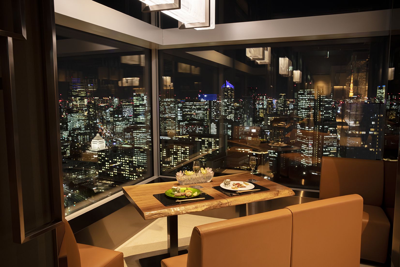 和食を提供するメインダイニング。旬の素材の鮮度を閉じ込めてお届けするイメージを込めた「アイス」をコンセプトに、クリスタル調のインテリアなどで店内を演出します。ダイニングエリアのほか、日本酒を楽しめるSAKEバーや鉄板焼カウンターと寿司カウンター、個室を備え、お客さまのスタイルに合わせてご利用いただけます。