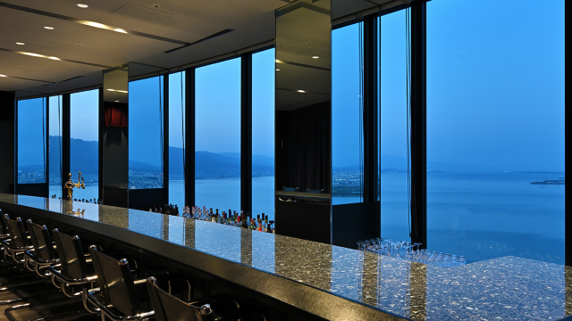 ホテルの最上階にあるバーラウンジです。窓面からは、大津の街並みや琵琶湖が一望でき、夜間は美しい夜景も楽しめます。インテリアや照明にこだわったムーディな空間で、美味しいお酒を味わいながら大人の時間をお過ごしください。店内には、世界各地から取り寄せた銘酒を取り揃えています。見た目の美しさと味にこだわったカクテルもご用意していますので、おつまみと一緒にご堪能ください。