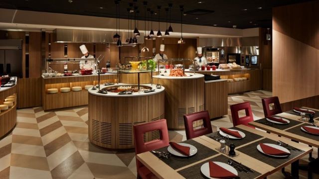 店内に一歩足を踏み入れると、明るい広々とした空間が広がります。そんな開放的な店内で楽しめるのは、四季折々の食材を贅沢に使った色とりどりの料理の数々。当店では、出来立ての料理をパフォーマンスとともに楽しめるライブ感も大切にしています。ドリンクのラインナップも豊富です。これまでにない新しいスタイルのブッフェを通して、美味しいとわくわくした気持ちを当店でご堪能ください。