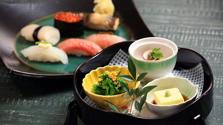 大きな窓のある店内からは、庭の木々が見渡せる開放的で和風の空間が広がります。カウンター席やブース席、ゆったりと座れるテーブル席をご用意。利用シーンに合わせたお席をお選びいただけます。四季の素材を活かした和食のほか、江戸前寿司、天ぷら、焼き鳥など豊富なメニューが人気です。伝統的な日本料理を、職人の技で舌と目で楽しめる新しい懐石料理として提供しています。日本酒やソムリエが選んだワインとともにお楽しみください。