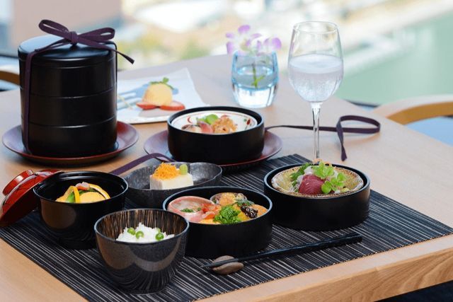 ホテル最上階から、大阪市街を一望する絶景の中、「中之島」をイメージした水と光の和空間で、四季折々の旬の食材を使った美しい日本料理をご堪能いただけます。器と料理の織り成す美しい出会いを、選りすぐりの酒とともにお楽しみください。