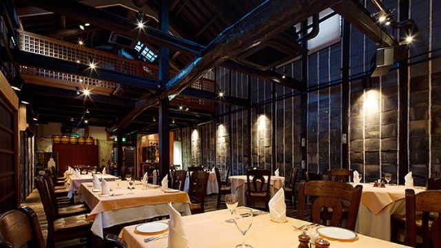 レストラン八間蔵は、倉敷ロイヤルアートホテルの別館にあるフレンチを提供しているお店です。重要文化財である大橋家住宅にあった米蔵を改装して作られた、情緒と共に開放感あふれる店内で、瀬戸内ならではの四季折々の食材で作られる本格フレンチ料理をお楽しみいただけます。味だけではなく、彩り豊かな美しさもご堪能ください。また、ワインをはじめとした、各種アルコールなどのドリンクも豊富にご用意しております。