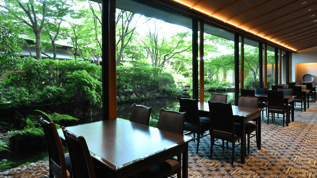 店内に入ると、大きな窓の外に広がる日本庭園を堪能することが出来ます。落ち着いた佇まいの中、大事なご友人やご家族と素敵なひと時をお過ごしください。おいしい和食をたくさん味わいたい、そんな方の為に素敵なメニューをご用意しています。新鮮な海老や白子を使った天ぷら、銀鱈の西京焼き、産地に拘りぬいたしゃぶしゃぶをどうぞ。フグがお好きな方は、フグ刺し、フグから揚げ、フグ白子をご堪能ください。食事と一緒に全国から激選した日本酒もお楽しみいただけます。