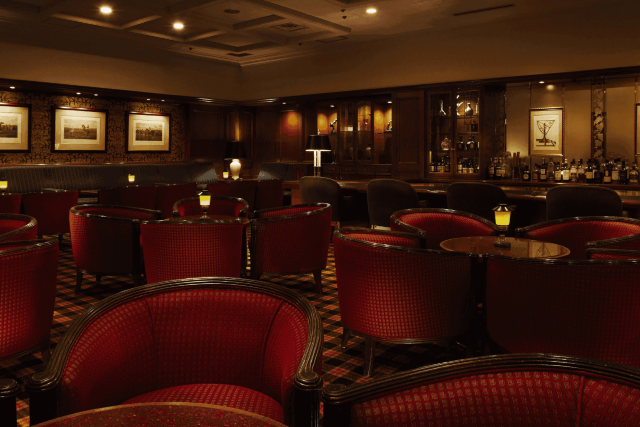 ロイヤルパークホテル内地下1階『メインバー ロイヤルスコッツ』。世界中の銘酒やお酒に合った軽食を楽しんでいただくことが出来ます。英国の古き佳き時代を思わせるインテリアのなかで、グラスを傾けながら、静かな時間をお過ごしください。また、より特別な時間と空間を過ごすため、個室のご用意もございます。