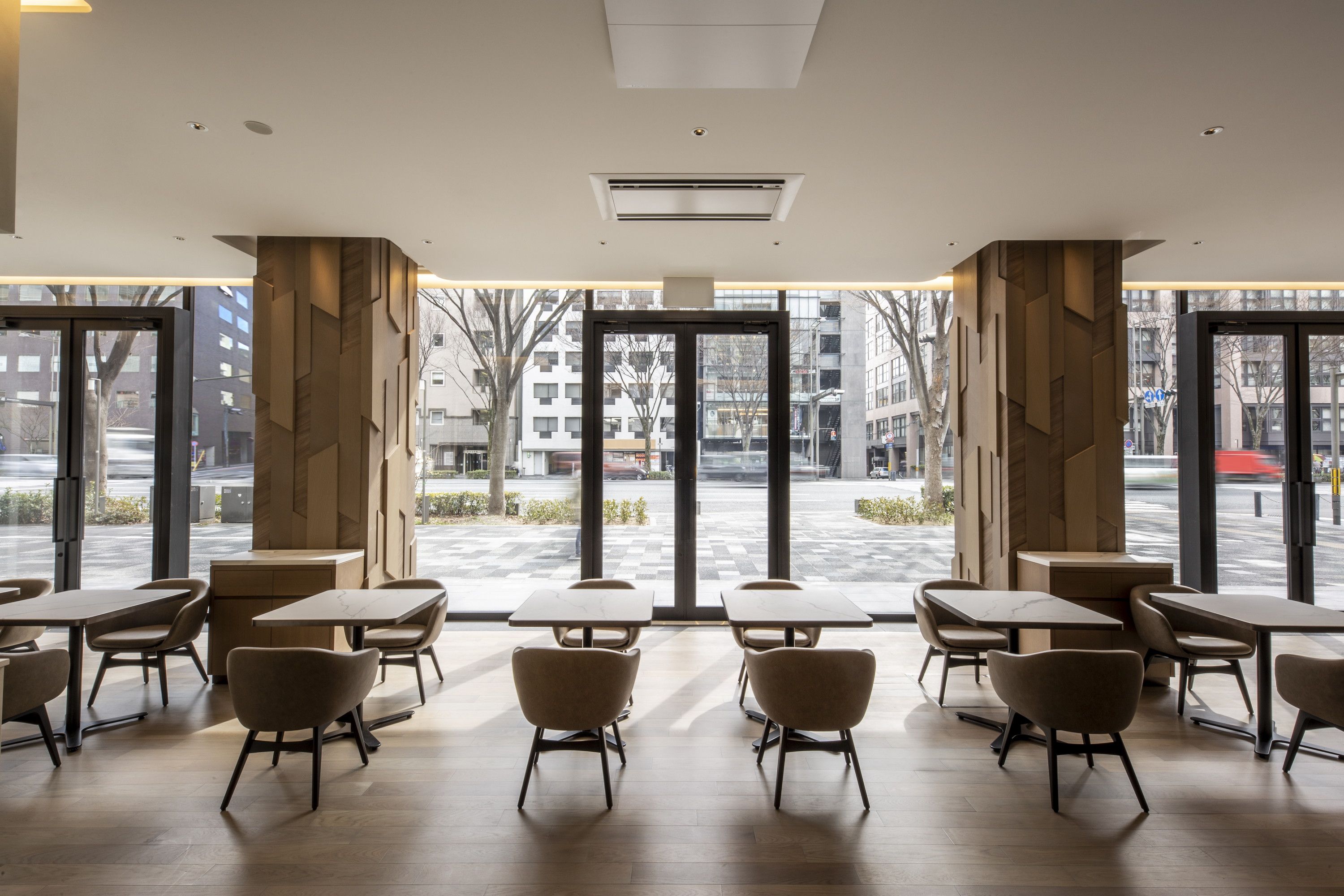 祇園祭の山鉾巡行も行われる「御池通」に面している「THE OIKE TERRACE」 明るく開放的な空間でお食事をお楽しみいただけます。 ランチタイムには、20種類以上の中から選べるパスタとサラダのセットを用意し、また、カフェタイムには同ホテル1「サダハル・アオキ・パリ 烏丸御池店」のスイーツをダイニングでもお召し上がりいただけるよう、ケーキとドリンクのティーセットにてご提供いたします。