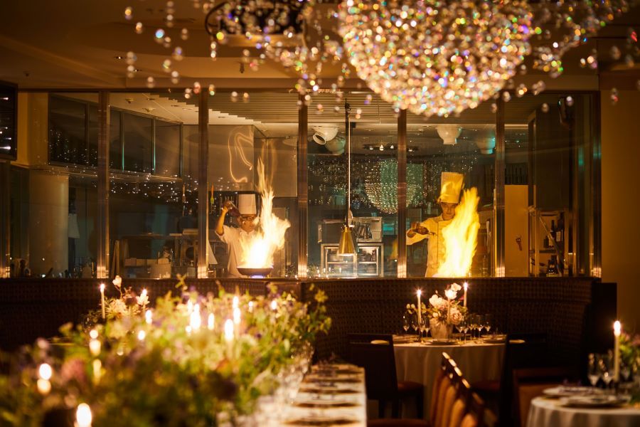 地上95メートルの高さの店内の窓からは、大宮の夜景が広がります。フラワーシャンデリアなどアーバンスタイリッシュなインテリアが内装を彩り、幻想的な空間を演出しています。SAKURA SKY PALACEは結婚式場でありながら、ランチやディナー、ご宴会や会議・セミナーでのご利用も可能。お食事は、味だけでなく見た目にもこだわったフレンチを提供しています。ソムリエが厳選したお料理に合うドリンクもご用意しておりますので、お料理とともにアルコール類もお楽しみいただけます。