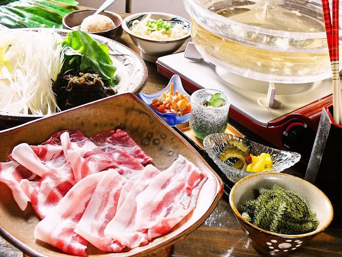 当店では、県産黒毛和牛A4ランク以上のお肉を使用した絶品すき焼きをお楽しみいただけます。ジューシーでさっぱりとした沖縄県産の「パイナップルポーク」や「あぐー豚」のしゃぶしゃぶもご用意しております。宮古郷里牛赤身やサーロインを使用したすき焼きは、風味豊かで飽きることなくお召し上がりいただけます。ご家族やご友人と、心温まるひとときをお過ごしください。