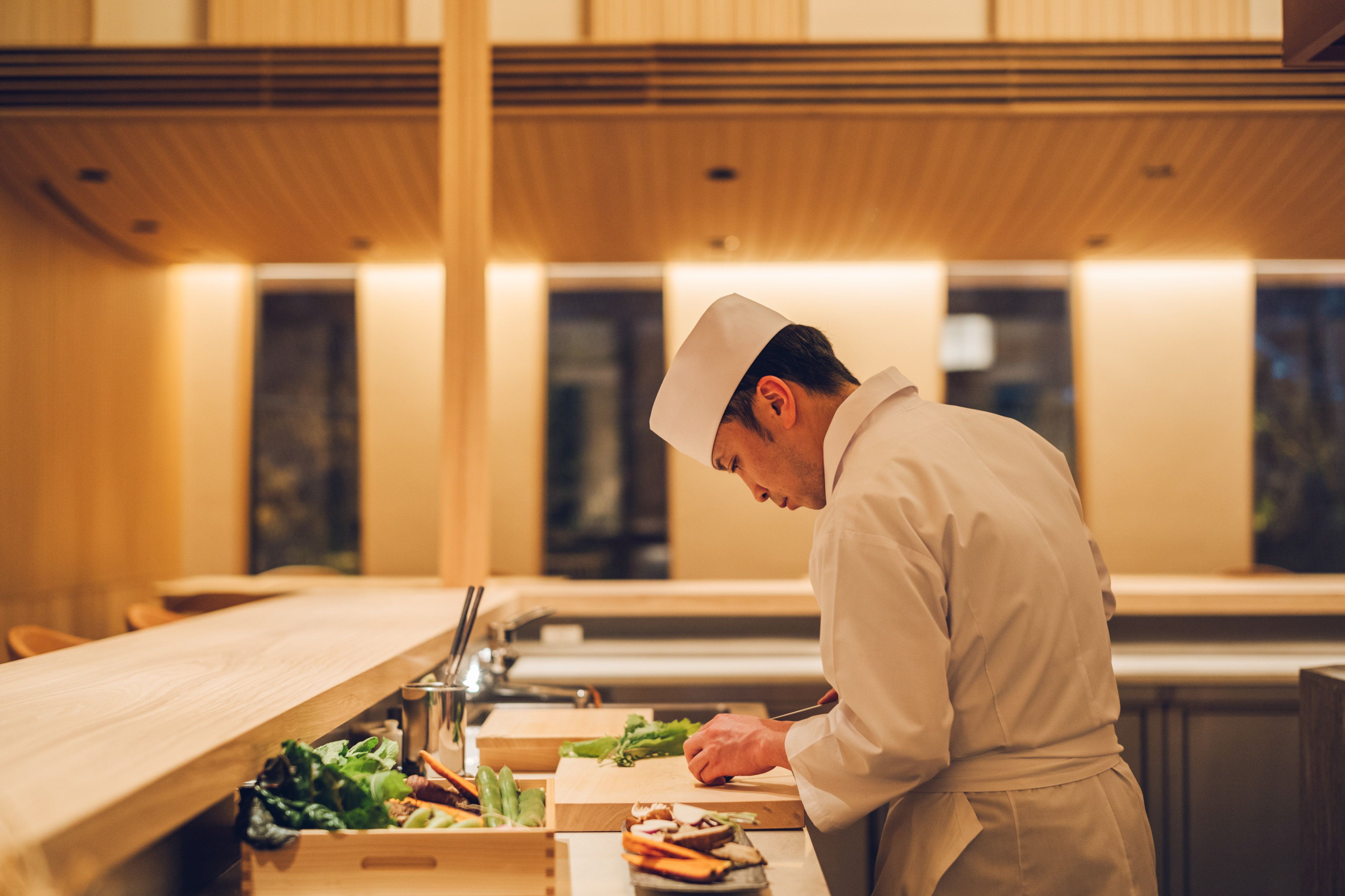 「躍動感あふれるカウンター席で、肩ひじ張らない日本料理を。」 地元出身の料理長が、但馬の豊かな食文化を伝え紡いでいくために、自然農法の地野菜や但馬の在来種など、この土地ならではの伝統食材を取り入れて、四季折々の但馬を五感で楽しんでいただけるよう努めています。 冬季限定の活松葉蟹コース、唎酒師が選んだ兵庫の地酒なども豊富に取り揃えております。 お子様にも楽しんでいただけるようなメニューもございます。