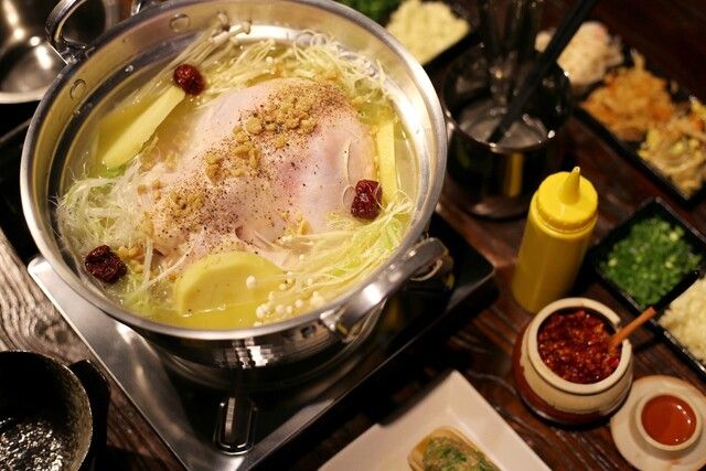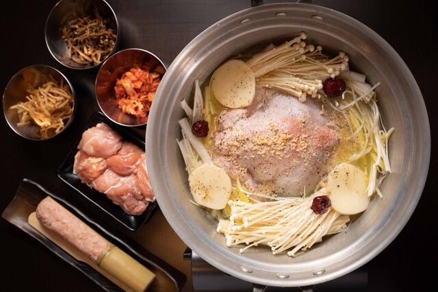 渋谷の喧騒から一変するオリエンタルな韓国風の店内は、食欲を刺激するタッカンマリの香りに包まれています。丸鶏を一羽ごとじっくりと煮込んで作られた出汁は、あっさりとしていながら鶏の深いコクと旨味が凝縮。女性に嬉しいコラーゲンがたっぷり含まれているのも魅力です。フレッシュでプリッとした鶏肉と当店自慢の特製甘辛万能ダレの相性は抜群。ヘルシー&スペシャルなディナーをほんのり甘いマッコリと共に堪能してください。