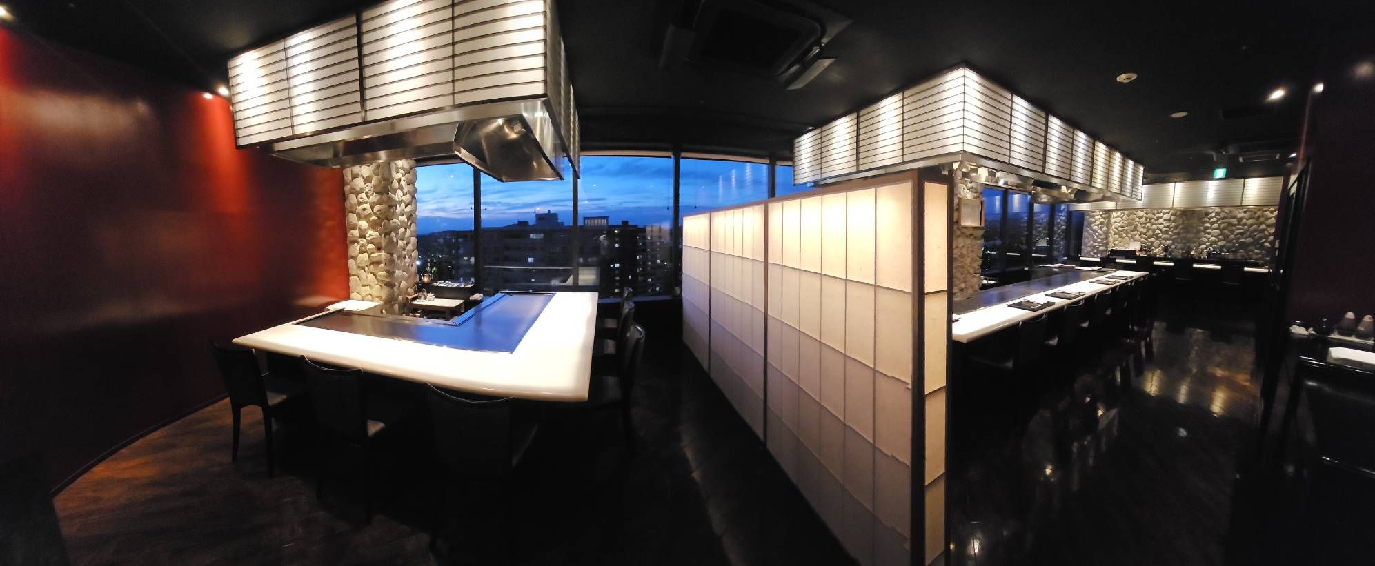 店は神戸西神オリエンタルホテル17階(最上階)にございます。全席カウンターで、シェフが目の前の鉄板でステーキを焼き上げます。