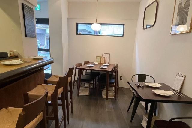 "フランス料理、ワインを楽しめるレストランです。 オープンキッチン、カジュアルなフレンチビストロ。 カウンター席と、テーブル席がございます。