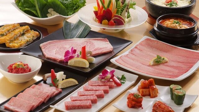 当店は50年以上にわたり、焼肉・韓国料理一筋で「おいしさ」を追及してきました。北は青森から南は九州まで、妥協を許さず常に新鮮で最高の黒毛和牛をご用意しています。その味を引き立てるのは、当社独自製法による秘伝のタレ。厳選醤油をベースにワイン・ニンニク・リンゴを加え、3日間じっくり熟成させています。富山県産純度100%のコシヒカリ、科学肥料・農薬を一切使用せずにイチから育てたサンチュなど、こだわりの食材とともにお楽しみください。