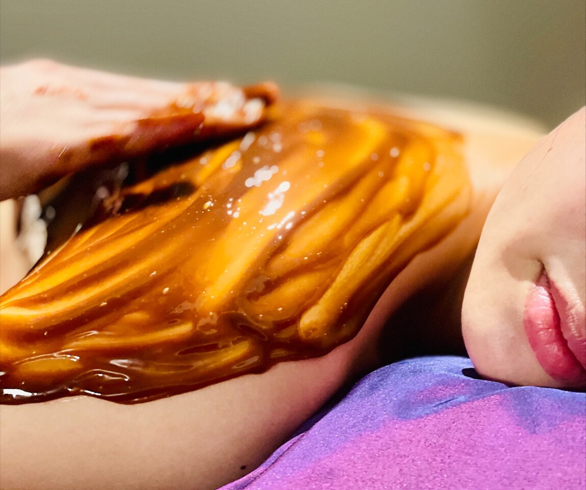 背中、腕、脚、胸、お腹はオイルを使用、顔と頭はドライで全身トリートメントいたします。