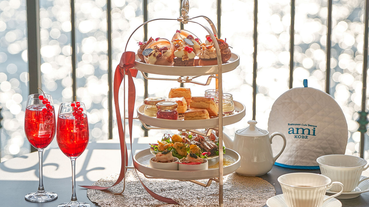 濃厚で奥深いチョコレートの魅力を表現したスイーツにベーカリー特製スコーン、アミ神戸総料理長が手掛けるセイボリーを取り合わせた特別なアフタヌーンティー。艶やかなシーズナルドリンク「Red Velvet」とともに、甘美なひとときをご堪能ください。ドイツ最高級品質ロンネフェルトの紅茶が飲み放題。