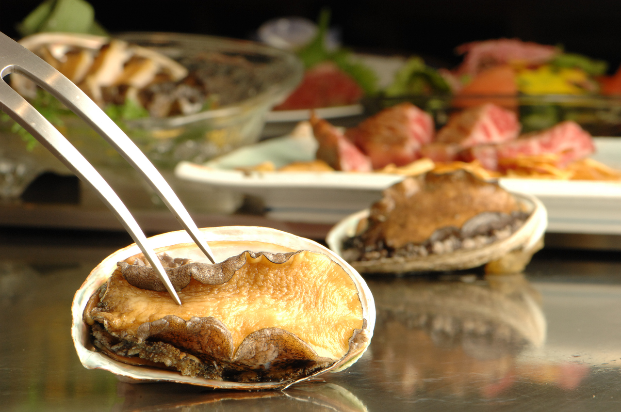 活エゾ鮑草蒸しト リュフが香るバターソース