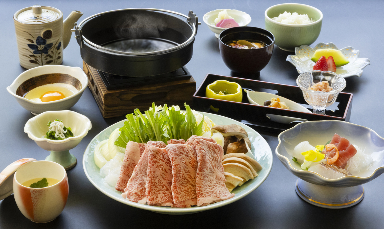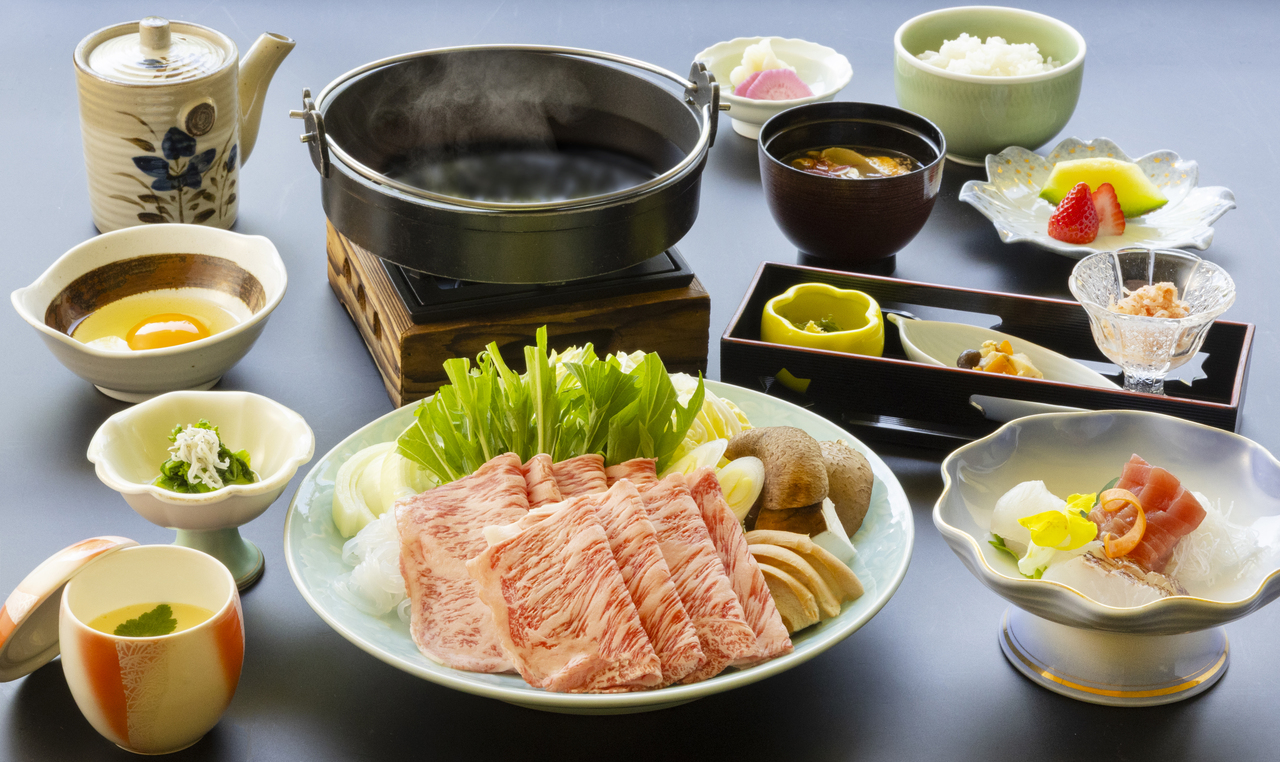 オリジナルブランド牛「いわて安比牛」をすき焼きにてお楽しみいただけるコースでございます。