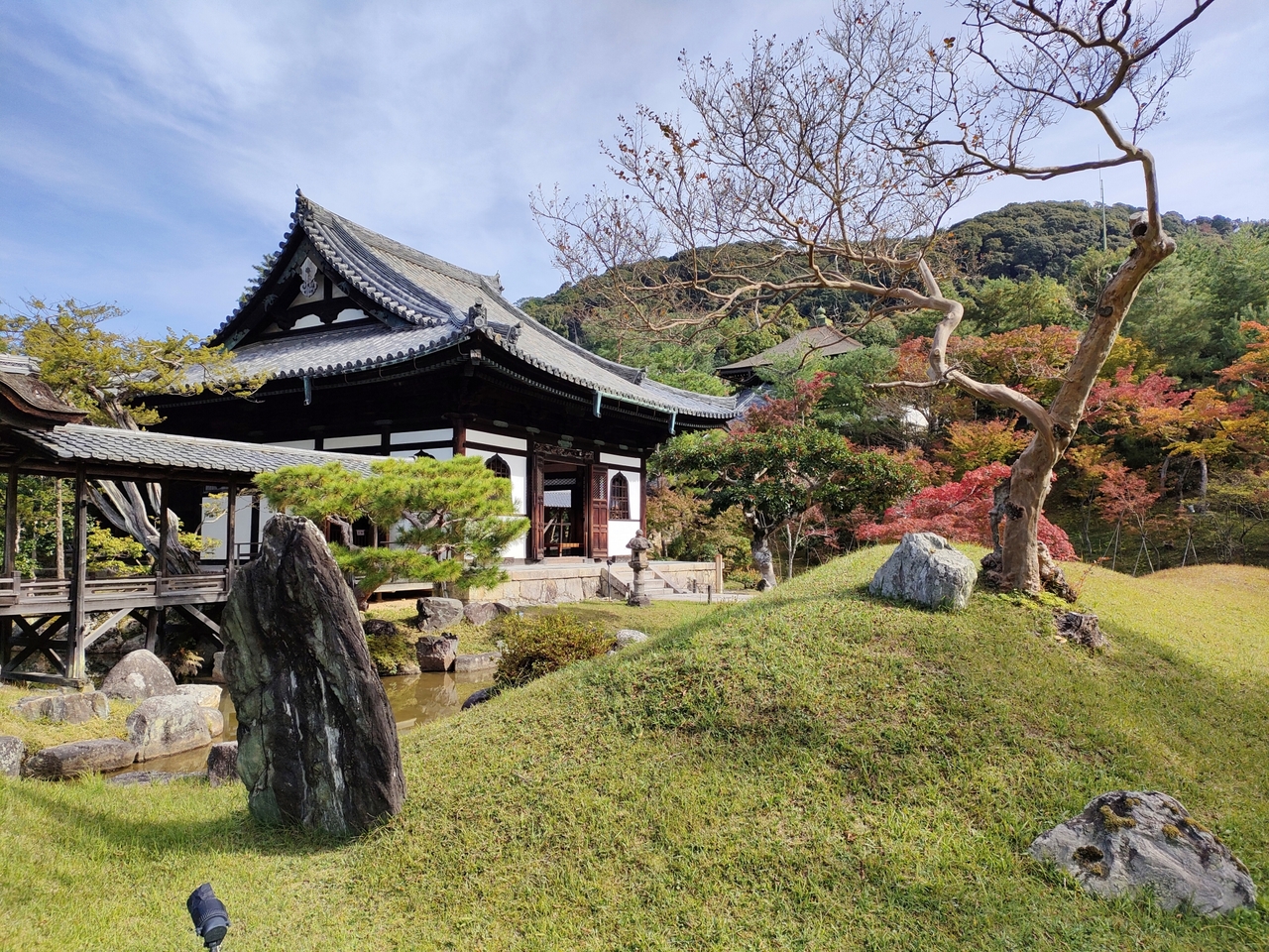 月真院は建立以来400年以上にわたり一度も火災などに見舞われることなく、補修のために手を加えながらも当時の面影を残す寺院。通常非公開となっており、お呈茶を行う本堂と緑豊かな庭からは、「五重塔」として知られる法観寺 八坂の塔を眺められます。