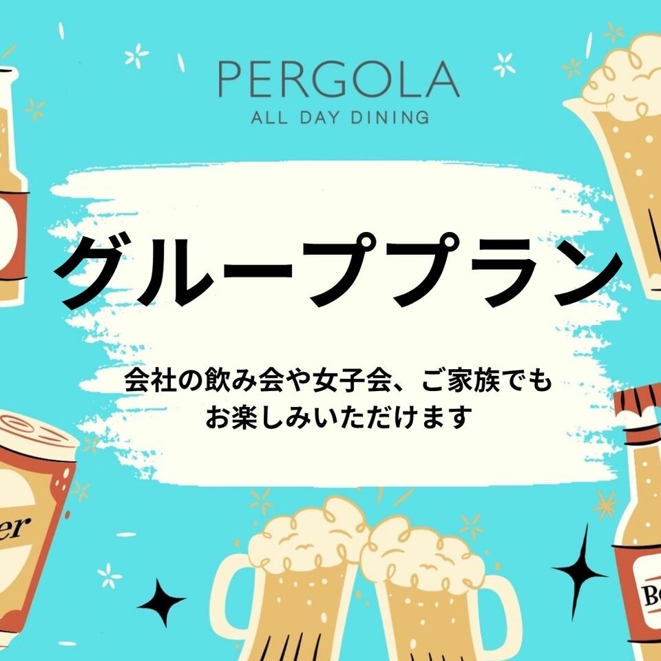 【パーゴラグループプラン 5名様~】*GW期間*ディナーブッフェ+アルコール飲み放題付 お一人様