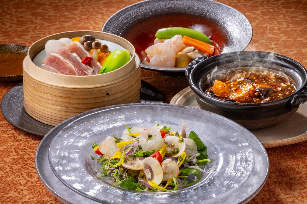 前菜盛り合わせ、ふかひれスープ、デザート2種が付いたお得なプランです。