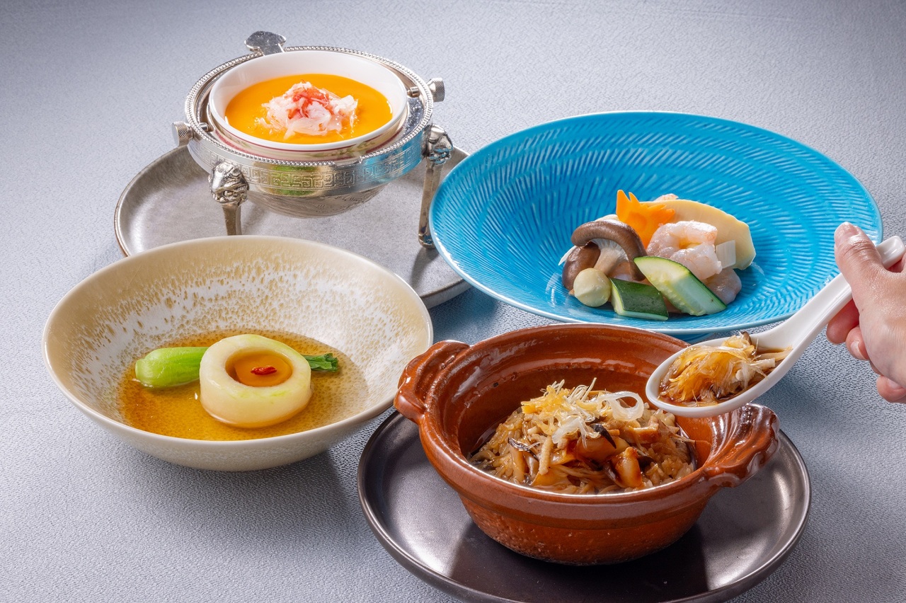 前菜盛り合わせ、ふかひれスープ、デザート2種が付いたお得なプランです。