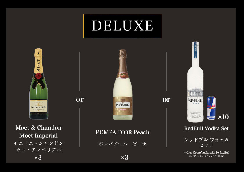 199,000円分のドリンクかアルマンド3本セットからお選びいただけます。