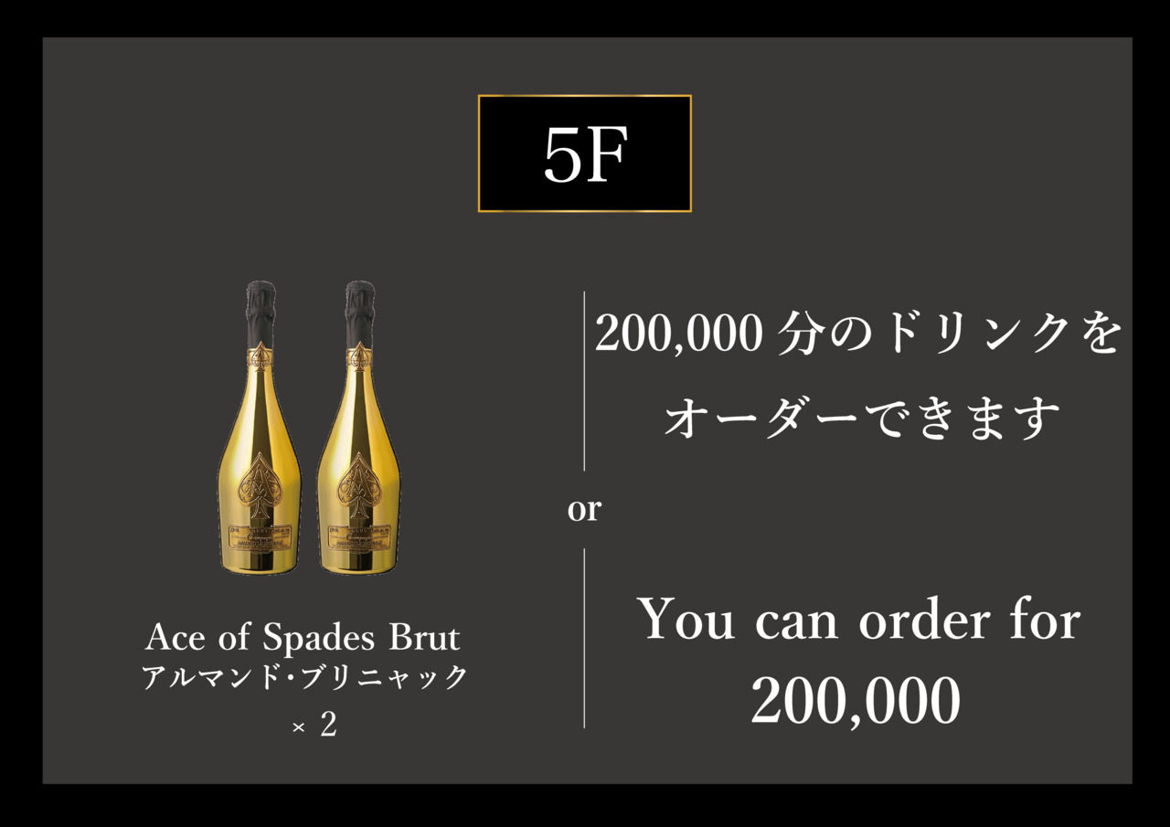 アルマンド2本セットor¥200,000-分ご飲食頂けます。