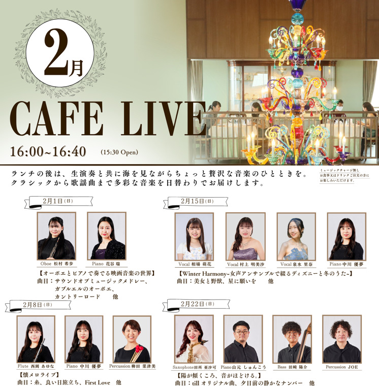 2/6〜「サウンド・オブ・ミュージック」の世界を味わう特別なひとときをお届けします。淡路牛や淡路産舌平目など、島の恵みをふんだんに使ったコース料理とともにお楽しみください。美しい旋律が広がるように、やさしく心に残る“音楽と食”のハーモニーを、ぜひ海の舎でご体感ください。